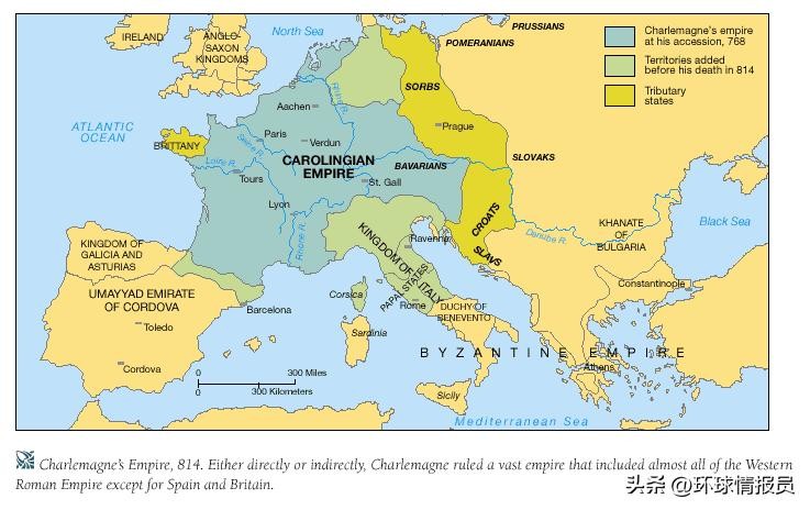 公元800年,查理曼大帝经过一系列扩张,建立了法兰克帝国。