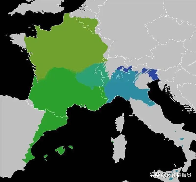 ▲高卢-罗曼语族分布