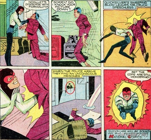 快银却成为了一个例外,在被DC收购之后,DC只在1972年漫画《闪电侠》#214中再版了《国家漫画》#67中关于快银的漫画故事。DC并没有对快银进行任何新的创作。