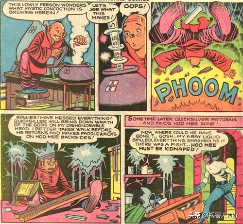 在194年漫画《国家漫画》#29中,质量漫画给快银创造一个中国的少年助手,叫做“胡米(Hoo Mee)”。其实胡米颇有一些辱华色彩,他长相非常滑稽并且非常笨拙。