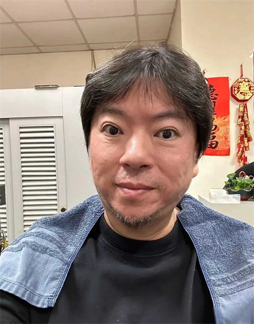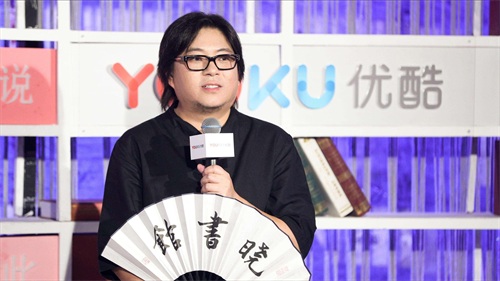 戴着黑框眼镜,手里总摇着一把折扇,身体圆滚滚的,长发披散,装得挺像个文人墨客。