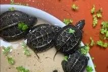 稚龟开始进食后,可移至幼龟池养护,水深约50厘米,池内养浮萍,投喂碎肉、鱼肉等动物性饵料,这些饵料摆放在斜坡上。