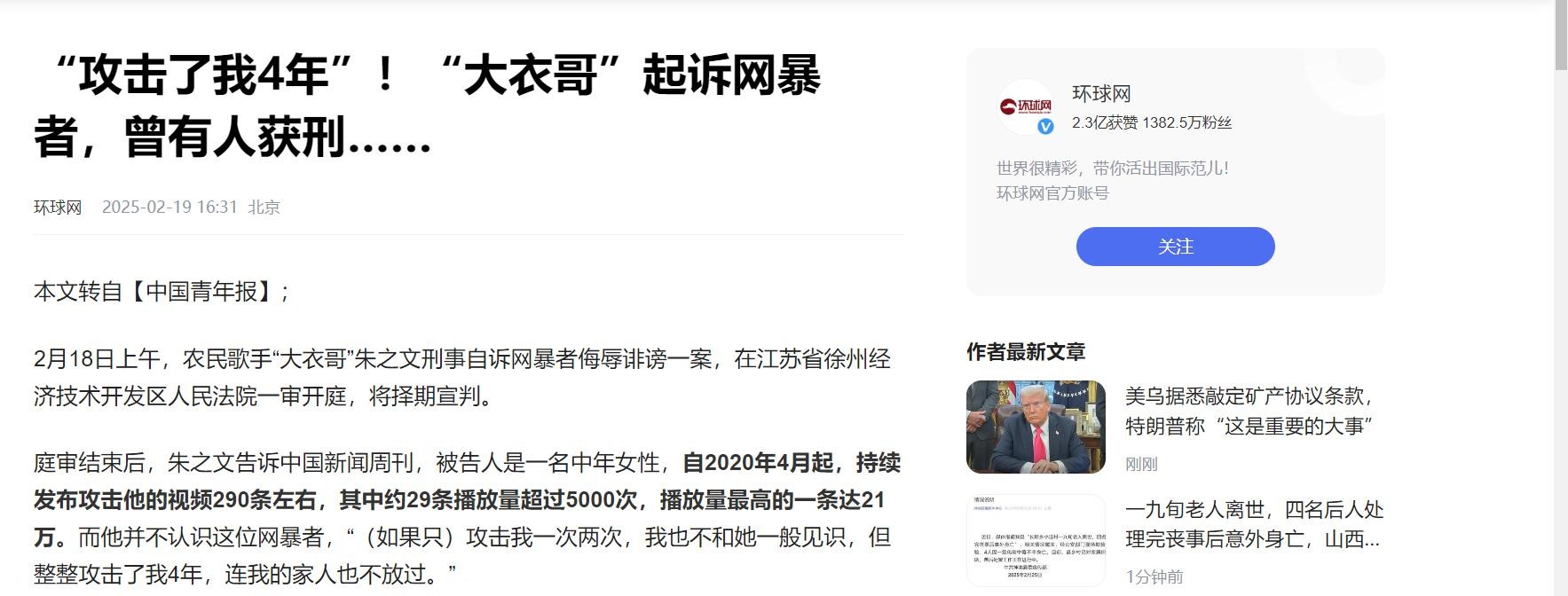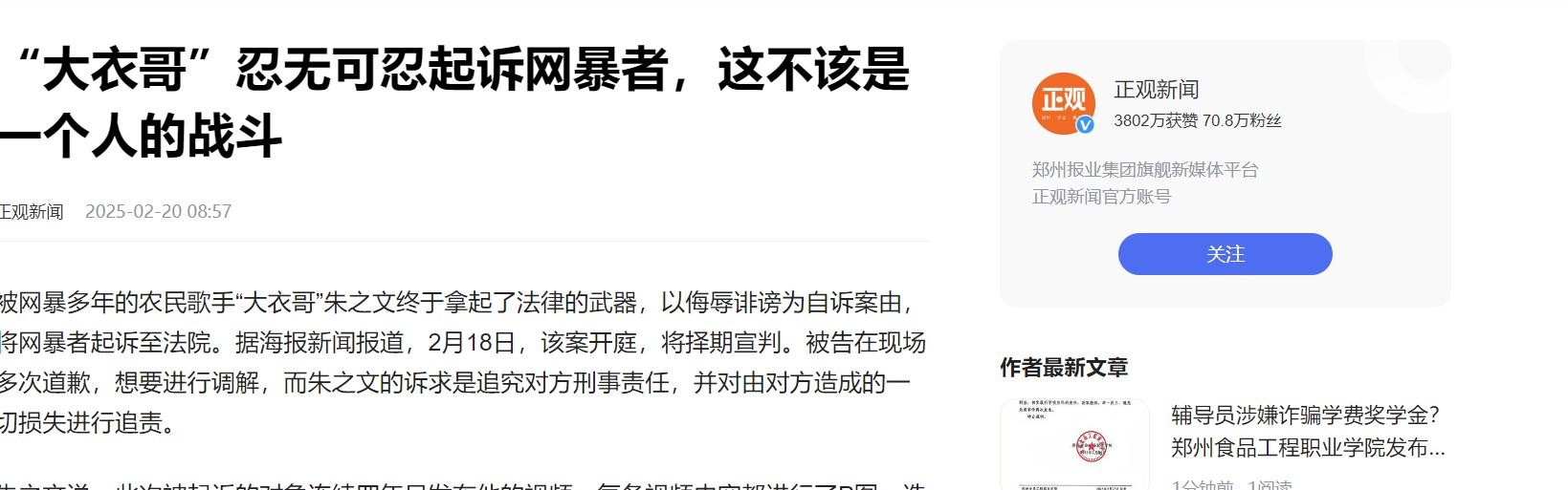 《封面新闻》|被网暴4年大衣哥决定不忍了 20250218