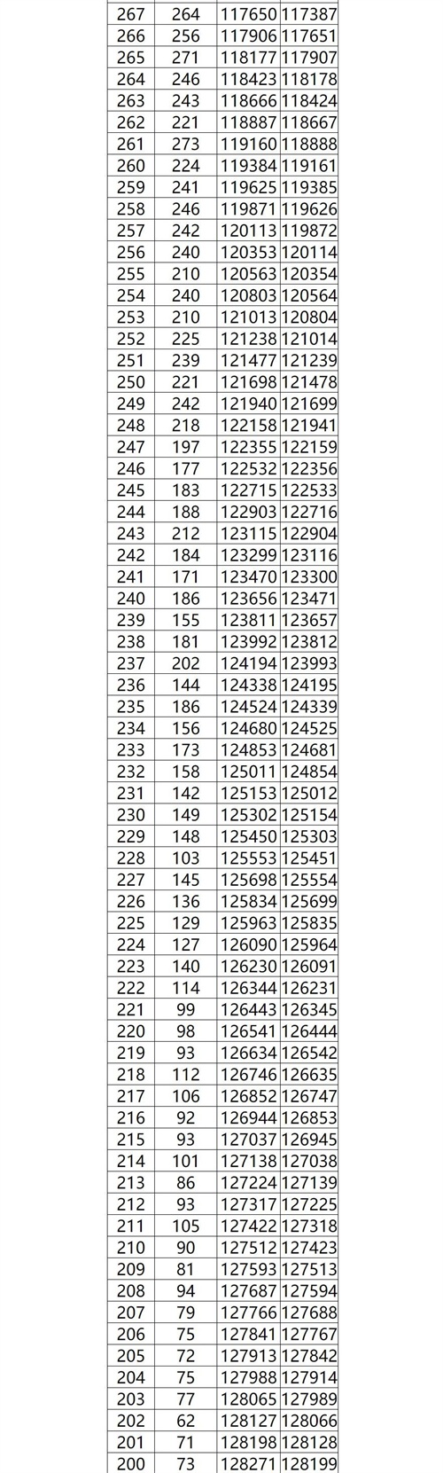 国家专项计划物理类一分一档表(总分=总成绩+全国性加分)
