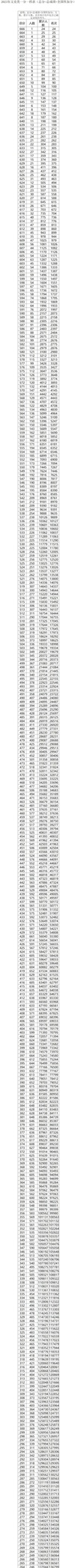 2022年文史类一分一档表(总分=总成绩+全国性加分):