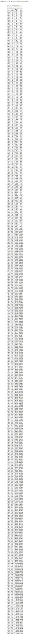 体育类、美术与设计类等请点击:2024年一分一档表