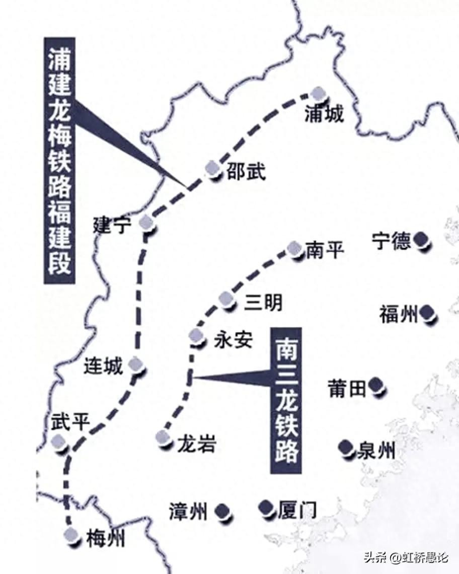 前有命运多舛的鹰梅铁路,后有同命相怜,而更具有传奇色彩的铁路~浦梅铁路。说同命,也是因为也是差不多一样的原因受大环境的政策调整影响;说传奇,是因为他的命名,浦梅铁路。这条铁路,原名叫浦建龙梅铁路,也是十二五规划建设项目,是从福建省浦城至建宁至龙岩至广东梅州的一条跨省快速铁路,简称为浦梅铁路。
