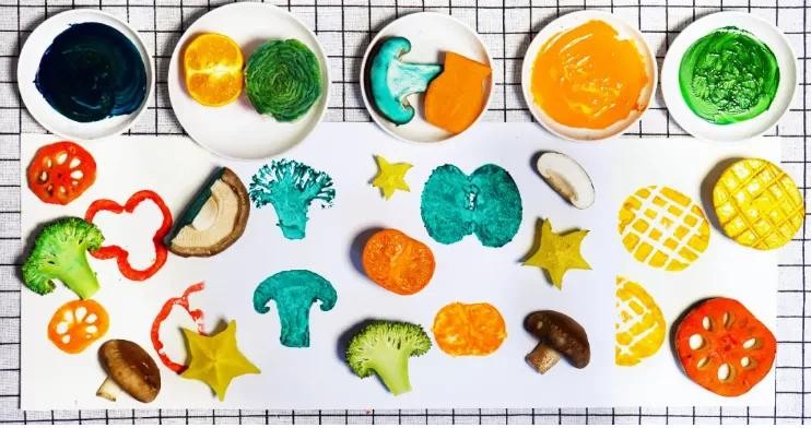 在生活中,我们每天能都会吃到各种各样的蔬菜和水果,它们也能化身为神奇的画笔,创造出各种美丽的花朵、昆虫、动物、人物等等,小朋友可喜欢玩啦。