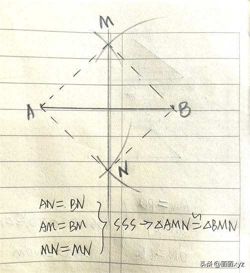 分别以点A,B为圆心,大于½AB的长为半径作弧;两弧交于M,N两点,连接两弧交点MN;所成的直线即为所求作的垂直平分线。
