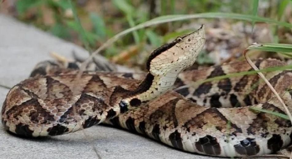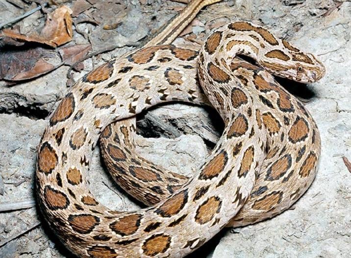 17.尖吻蝮(学名:Deinagkistrodon)是蛇亚目蝰蛇科蝮亚科下的一个单型蛇。为有毒蛇。生活习性:对照明较为敏感,雌蛇尾基部的臭腺分泌物有特殊臭味,能引诱雄蛇。
