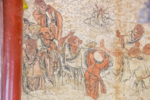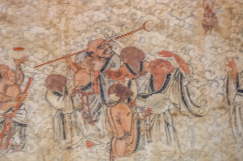 墙上绘画的是五百罗汉像,作品完成于明代。