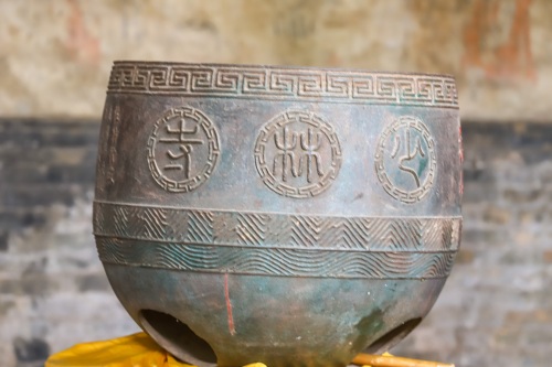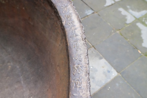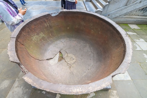 这口大缸,导游说是明朝,寺内僧人吃饭使用过的旧古董,现在已经破了,上面刻着生产日期。