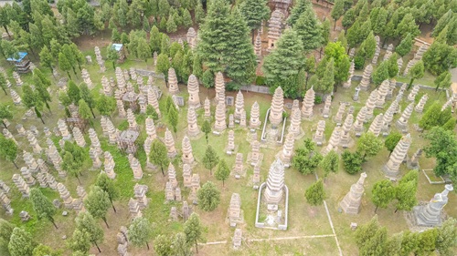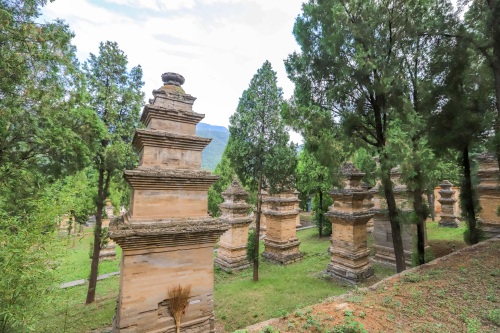 出了少林寺,向少室山缆车道方向走,会经过塔林,这是少林寺历代高僧火化后,舍利子安放的地方。