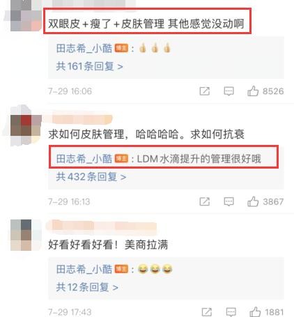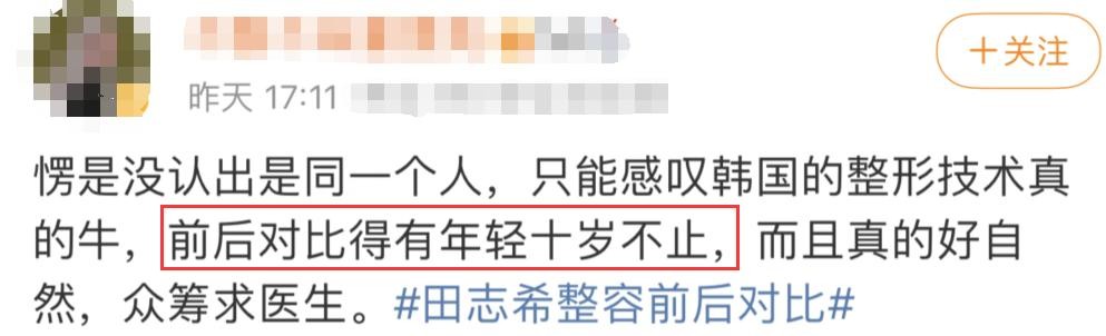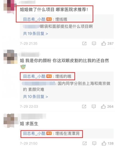 这两条动态下,田志希首次大方地承认自己整容,网友们都对她的整容项目很感兴趣。