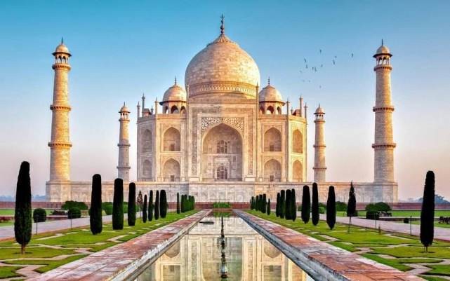泰姬陵,是印度知名度最高的古迹之一,世界文化遗产。建于1631年至1653年,是一座用白色大理石建成的巨大陵墓清真寺,由殿堂、钟楼、尖塔、水池等构成,全部用纯白色大理石建筑,用玻璃、玛瑙镶嵌,具有极高的艺术价值。泰姬陵是世界遗产中的经典杰作之一,被誉为“完美建筑”,又有“印度明珠”的美誉。
