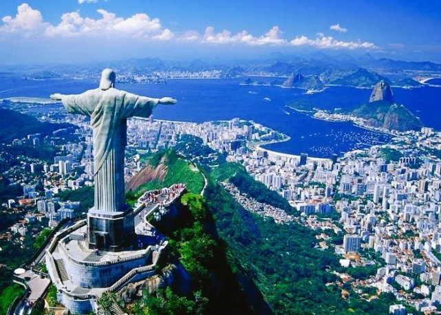 里约热内卢基督像,是巴西著名的地标,也是闻名于世界的纪念雕像之一。落成于1931年,总高38米,重1145吨。雕像中的耶稣基督身着长袍,双臂平举,预示着博爱的精神和对独立的赞许。喜欢看巴西足球和世界杯的网友,对这一雕像绝不陌生。2007年7月7日,该基督像成为世界新七大奇迹之一。