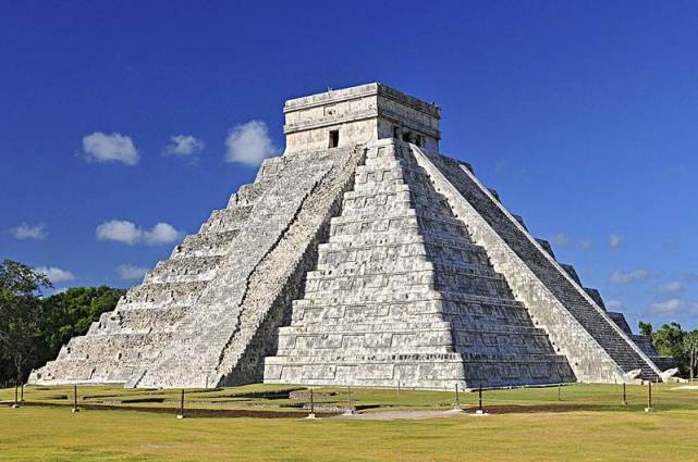 墨西哥奇琴伊查库库尔坎金字塔,位于墨西哥尤卡坦半岛北部。它是一座用土筑成的九层圆形祭坛,高29米,周边各宽55米多,周长250米左右。四周环绕91 级台阶,加起来一共364级台阶,再加上塔顶的羽蛇神庙,共有365阶,象征了一年中的365 天。