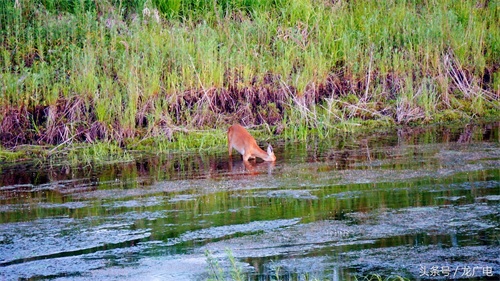 盛夏时节,水草丰茂。这只狍子大摇大摆地来到河塘旁边,察看好四周情况后,就大快朵颐起来。