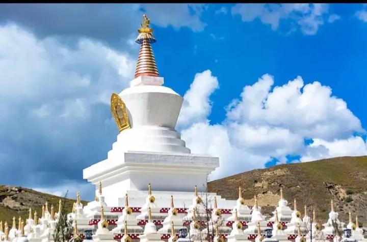 里面收藏着道高僧舍利、衣服、藏传佛教的经文等,因此也称藏经塔。塔多为白色象征着圣洁和佛法,藏民们经常去转转,有祈求丰收的意思,也包含着对自己美好生活的期待。