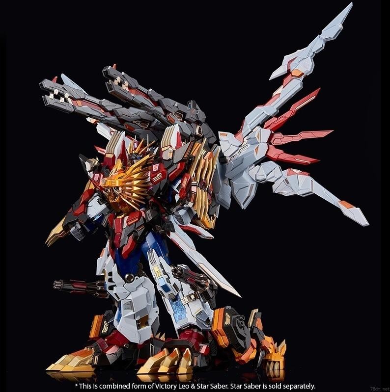 最终得到狮王史达(Victory Saber)的完全体,一手星辰剑,一手狮王巨炮(有弹射机构),双肩还有狮王的肩炮加持,肩部的导弹舱还可以打开,一副远近战双修的完美战神形态。