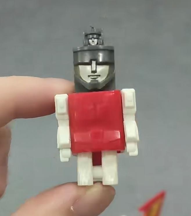 大头同样有联动机关,拉起头部时,原来折叠的面部会自动复位,不过由于年代久远,这个弹簧机构的设计倒是导致很多老玩具头部很难固定,十分容易向上弹出。这年头想找一个好的品相的G1史达非常难!