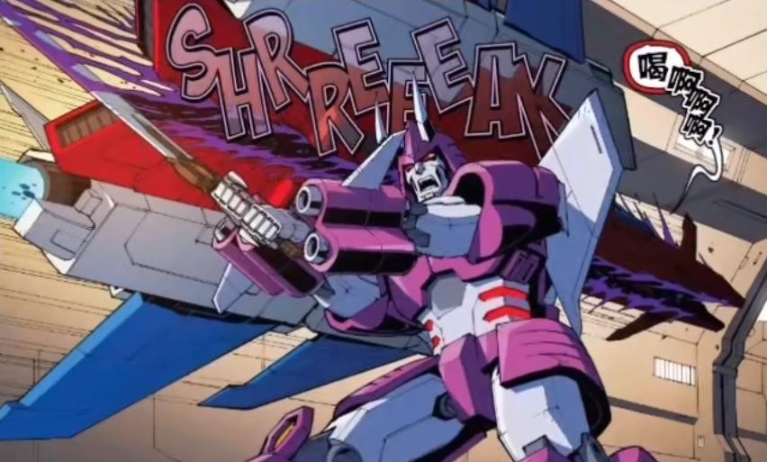 注意左下角的能量指示,狮王史达是变形金刚历史上第一个能力值满分角色,怪不得能以一人之力拿下霸天虎大军!