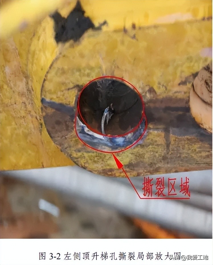 1.销轴孔发生椭圆变形、撕裂。塔吊左顶升销轴对应的活