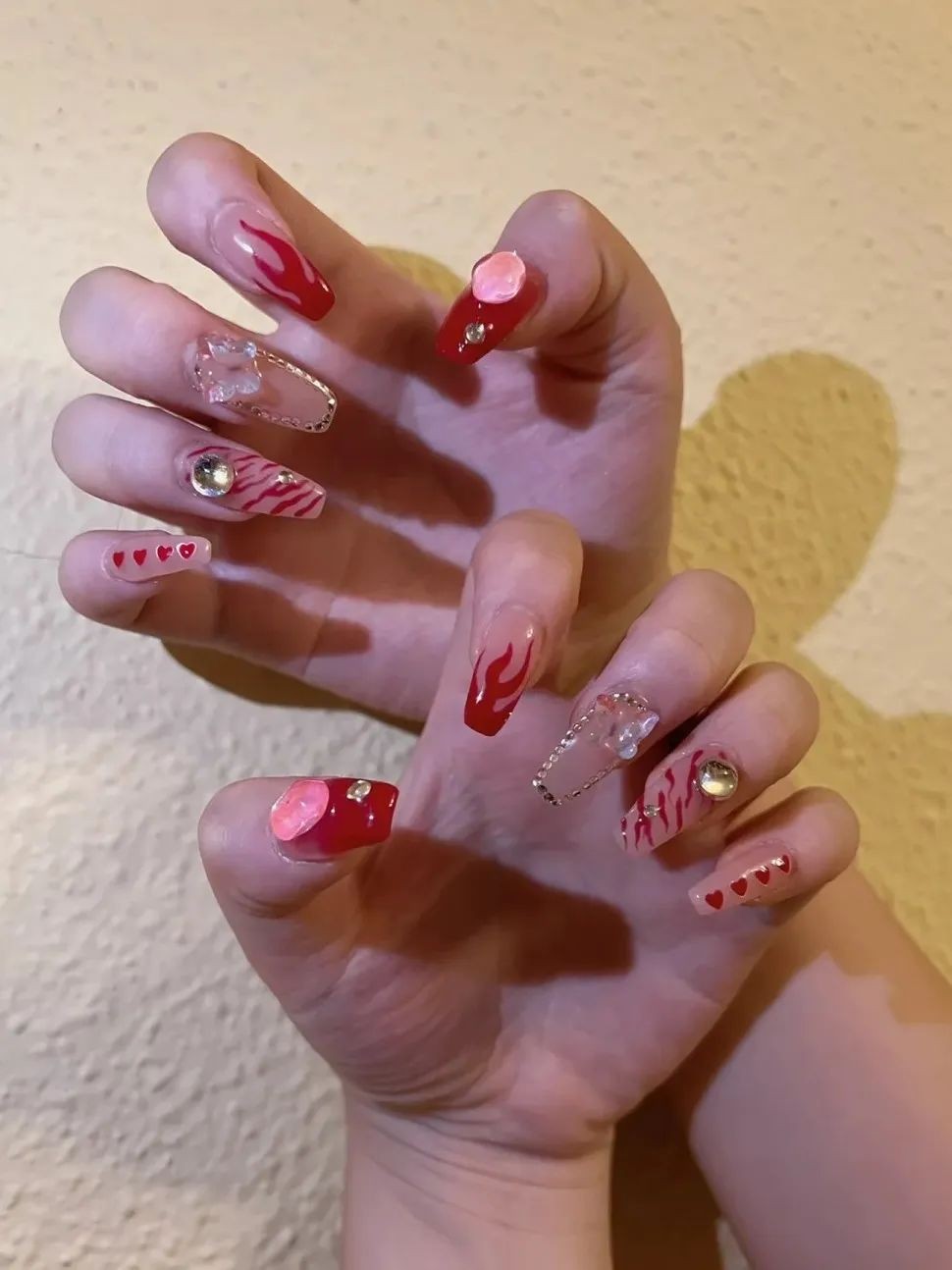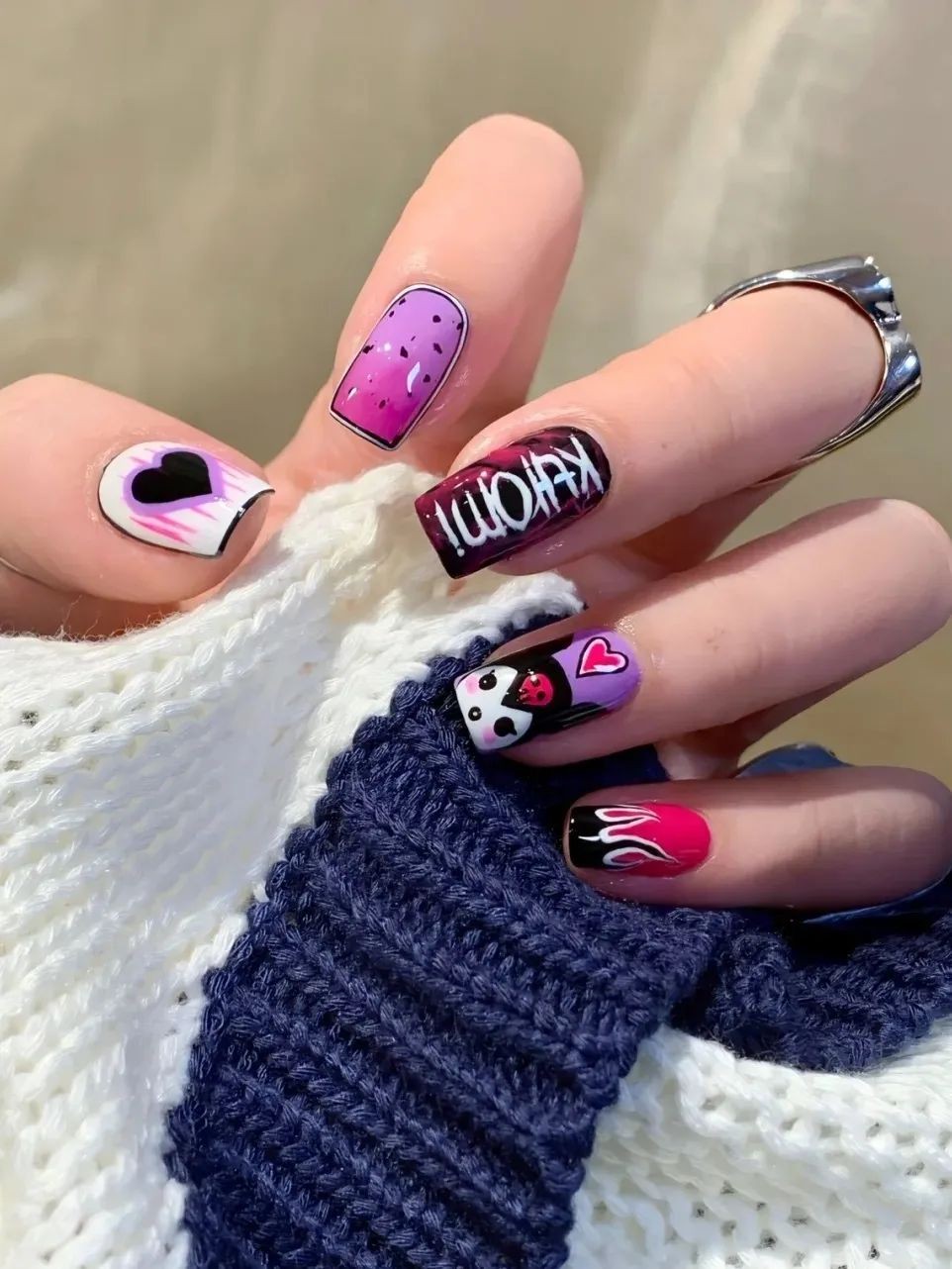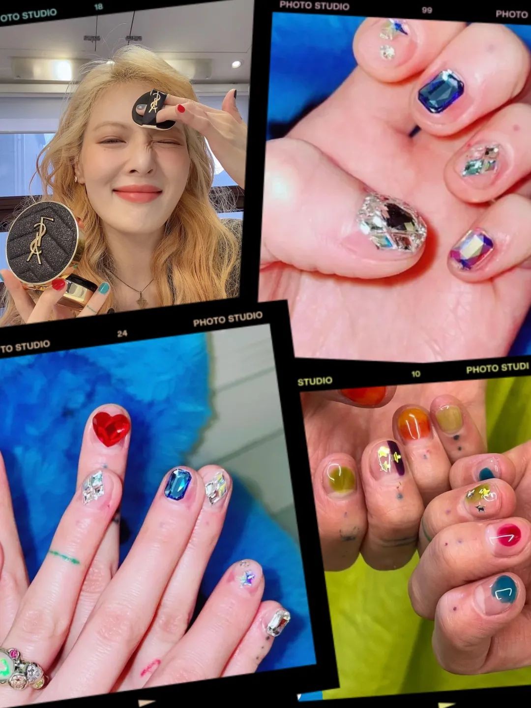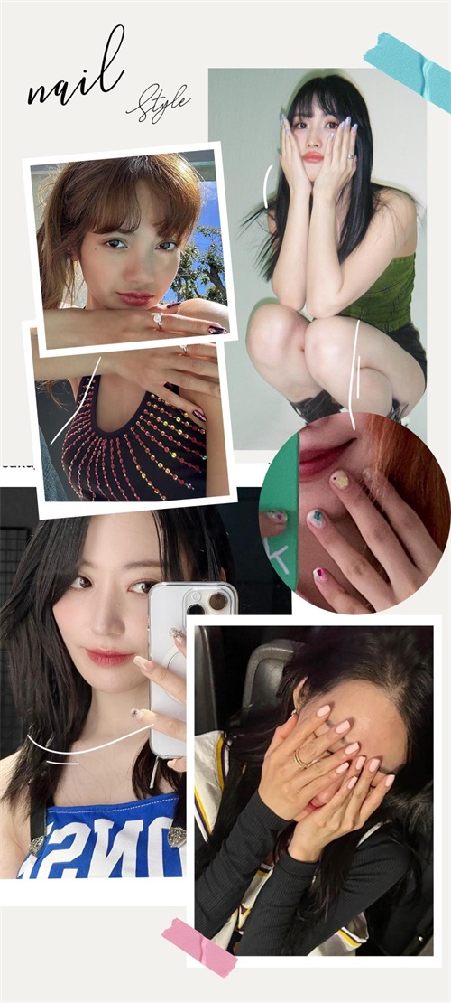 她的美甲子几乎都是辣妹炫酷风格的,而且大部分都是短甲,很适合不想贴甲片的姐妹们参考~