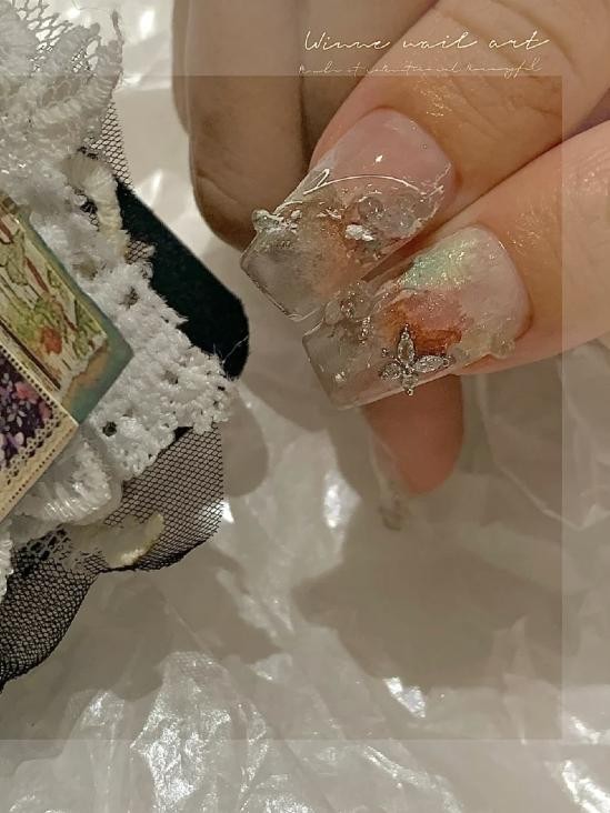 夏天不要太适合冰透水感甲!透亮裸色的美甲灰常轻盈,一整个告别呆板感~