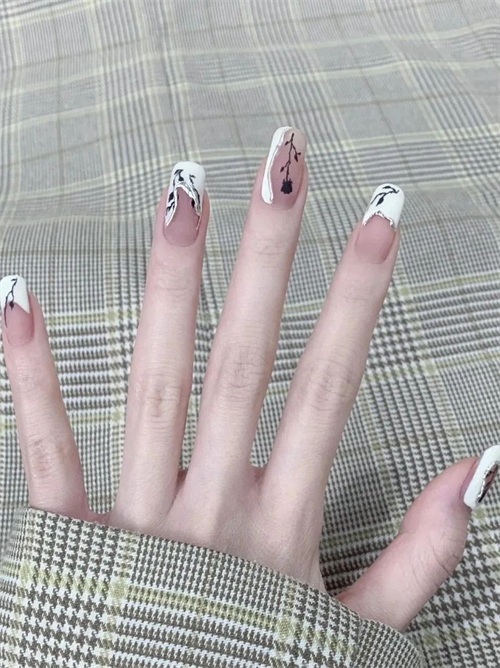 想要独特一点的姐妹也可以试试看不规则形状白色奶牛纹,冰透甲显得整个指甲都干净清爽起来,只是简单的颜色也可以简约高级。