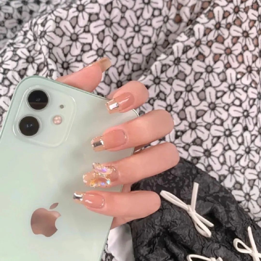 想要做延长甲片的话,就一定要试试细闪粉加上贴钻的样式,blingbling的很有富家千金那味哦~