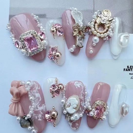 那要是增加点水钻和亮片就更不得了了,随便搭配点蓝色绿色都绝美!
