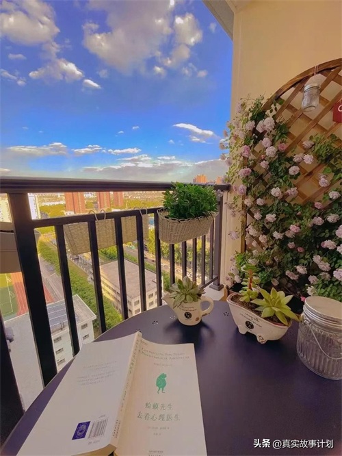 小宅在10平米的开放露台看书