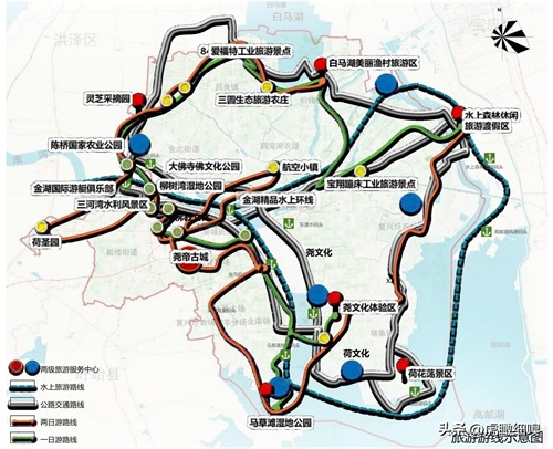 旅游支撑体系。打破行政边界:联动盱眙洪泽高邮等实现区域旅游一体化;打破行业门类:旅游+养老+等生活服务和旅游服务融合化;打破短时停留: 48小时全续航旅游线路打造。