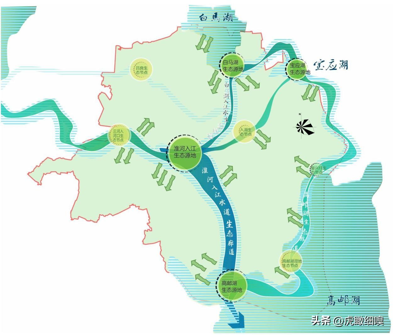 “多点”:主要包括白马湖、 高邮湖、 宝应湖等大型湖泊以及重要湿地等生态核心源点。