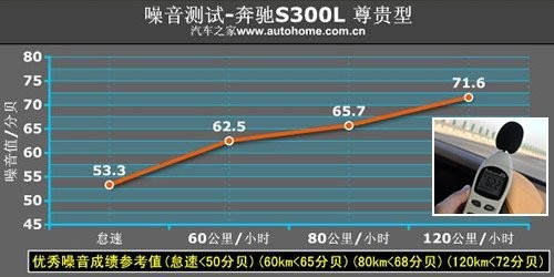 但在噪音测试和刹车测试中,S300L的表现都不辱奔驰S级的声名,前者的出色表现充分证明了奔驰精湛的工艺,为提升驾乘舒适性有着不小的帮助,而后者的优异成绩使这款豪华车在高速巡航时更加胸有成竹,因为驾驶者知道自己不但可以达到最快245km/h的时速,更可在突发情况下迅速停下疾奔的脚步。