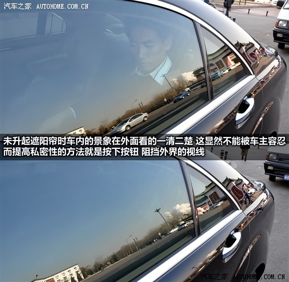 一般在路上见到的豪华型车都贴着很深的玻璃膜,可见私密性对于这些VIP级人物来说相当重要,但有时良好的透光性也能带来明媚的阳光和秀美的风景,如果隔着车膜怎能将美景本色的尽收眼底呢?两全其美的办法S300L已经想到了,后排座椅周围的三个车窗均配有遮阳帘,保证的私密性的同时还能不错过旅途沿线的风光。