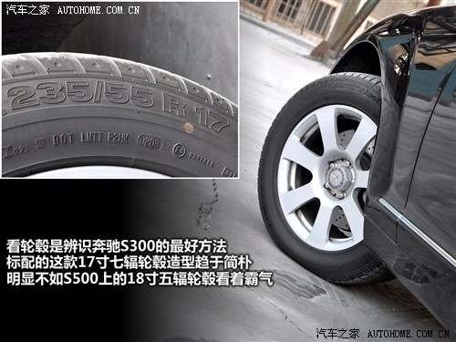 仔细甄别后发现,除了车尾的车型标识外,前大灯和轮毂是最容易暴露S300L入门级身份的体表特征,而相比前者只有远光灯透镜的细微不同,轮毂才是最容易用来区分车型的地方,而这款17寸轮毂的确显得过于平和了,有点配不上S级的威严气势。