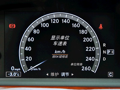 在S500L 4MATIC上我们已经提到过液晶屏式仪表的炫丽效果,此番再次见面自然免不了又要好好摆弄摆弄,而除了视觉效果更加科幻外,这项配置的真正意义是能在有限的区域中显示更多的内容和实现更多的功能,比如上面那个GIF动画表现的时速表不同单位的转换,这在传统仪表盘上是根本无法实现的。顺便说一句,这种液晶屏式仪表盘在现役的奥迪A8和宝马7系上都没有类似的配置,只在即将上市的新一代宝马7系上才有近似的功能,奔驰的技术领先性不言而喻。