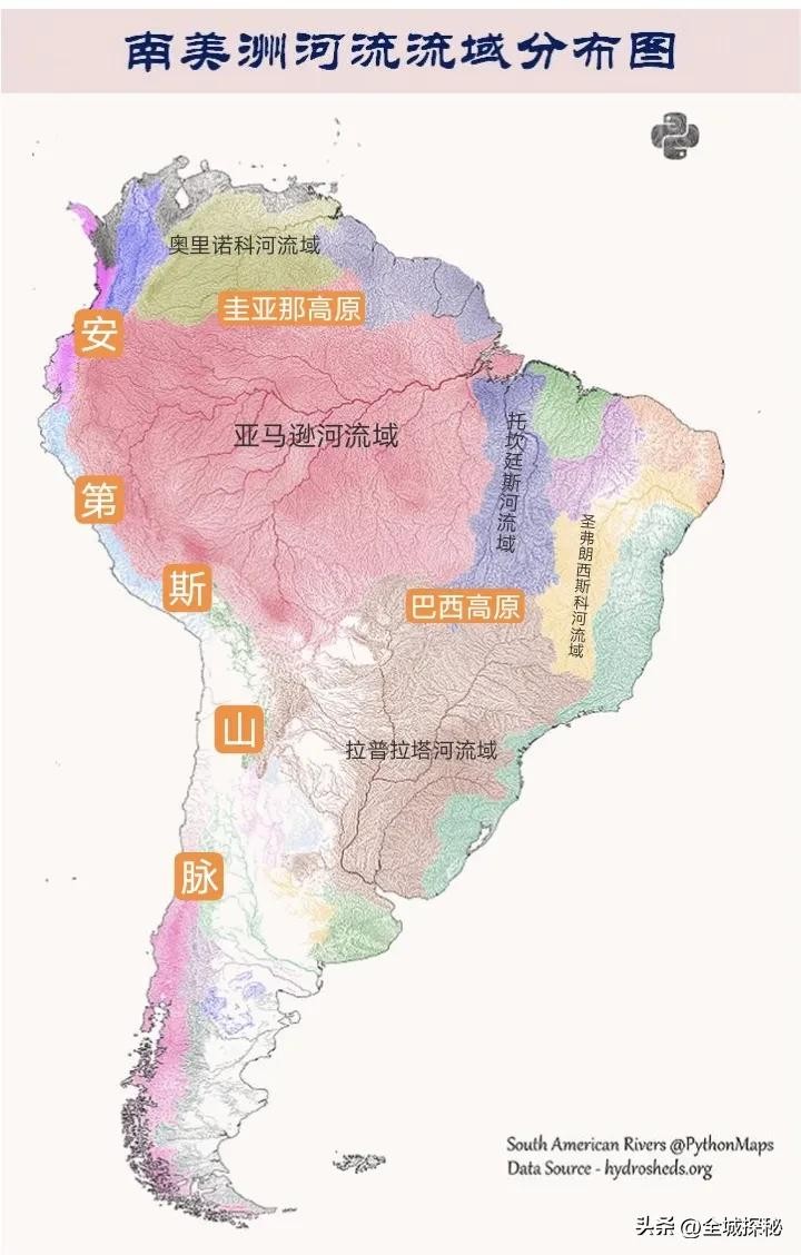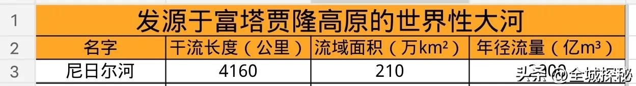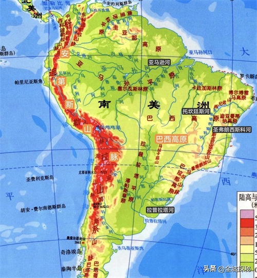 最后是安第斯山脉、圭亚那高原、富塔贾隆高原和阿尔卑斯山脉,都是1条世界性大河。