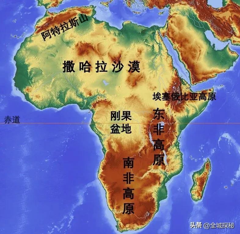 再往下是巴西高原和东非高原,各有3条世界性大河源头;