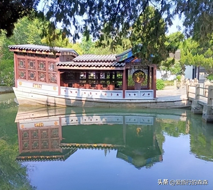 ③煦园:穿过熙园的时候能看到一个“寿”字象形石,接下来映入眼帘的就是,石舫(不系舟):清两江总督署建筑,位于熙园太平湖南侧。1757年乾隆下江南赐题“不系舟”。对面就是戏台,不得不说老祖宗就是会享受啊,在石舫上欣赏这对面的表演,声音经过湖水的传导更加清脆悦耳。