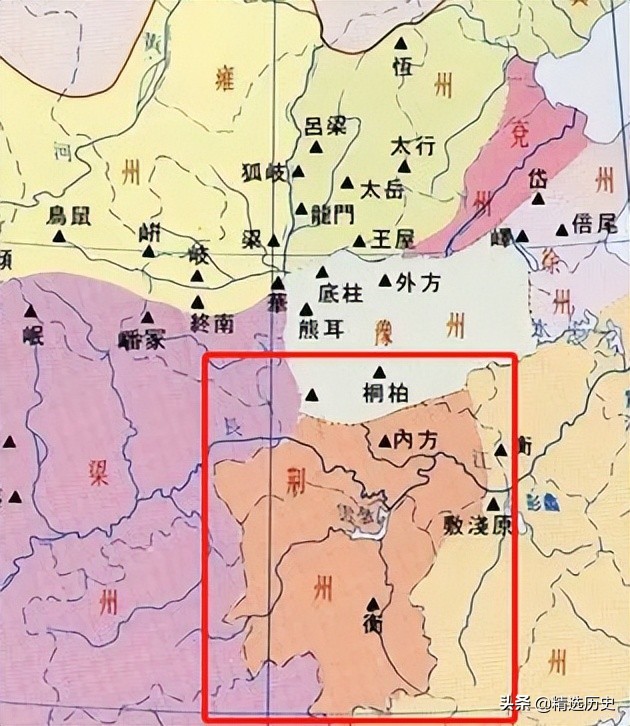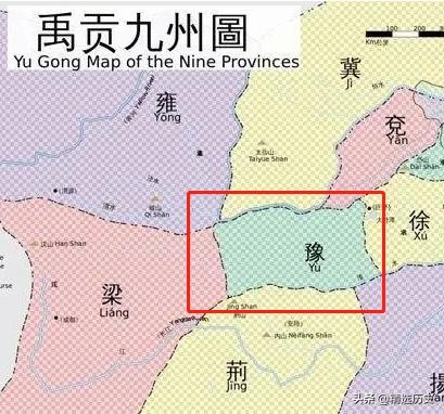《尚书 禹贡》里面说荆、河为豫州。意思是说荆山与黄河之间是豫州,也就是荆山以北、黄河以南是豫州,豫州与荆州的交界处是荆山,豫州的大概位置包括今天的河南省全部、安徽省西部的阜阳地区。