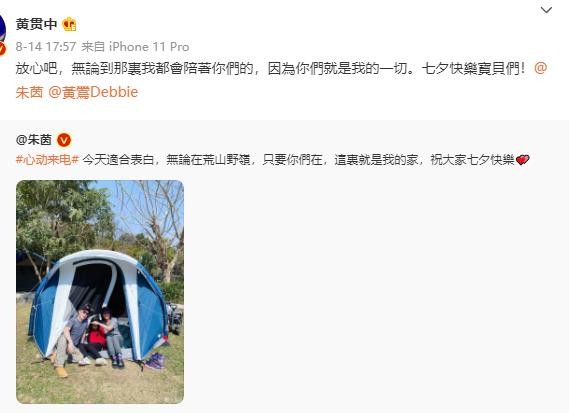 七夕,他晒出和妻女的露营合照,配上甜蜜的文字:“无论到哪里我都会陪着你们的,因为你们就是我的一切。”