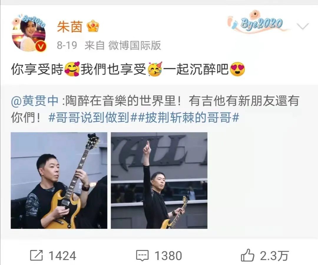 《披荆斩棘的哥哥》播出后,她更是变身黄贯中的小迷妹,逮着机会就为老公打call。