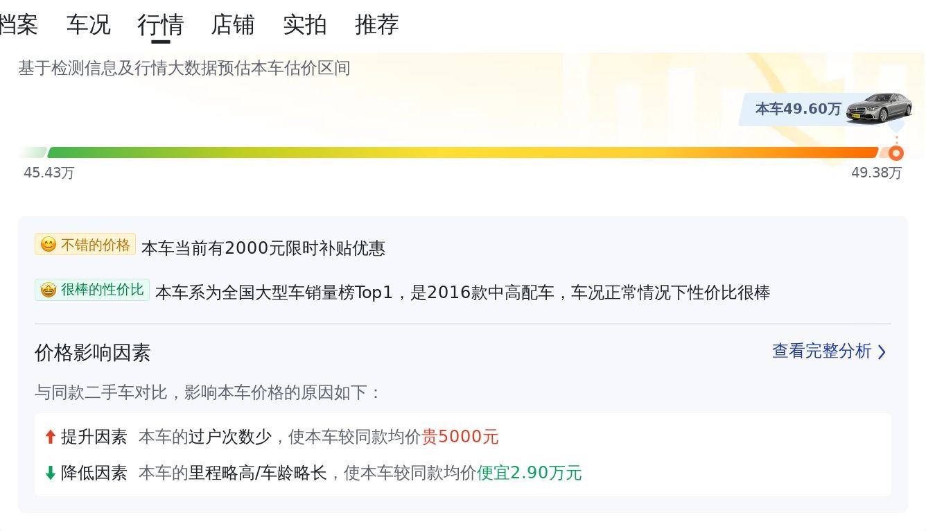 二手车一车一况,一况一价,像这辆车在外观和内饰检测中都有一些瑕疵,那么势必会在定价上有所体现,这也属于车况对价格的影响。