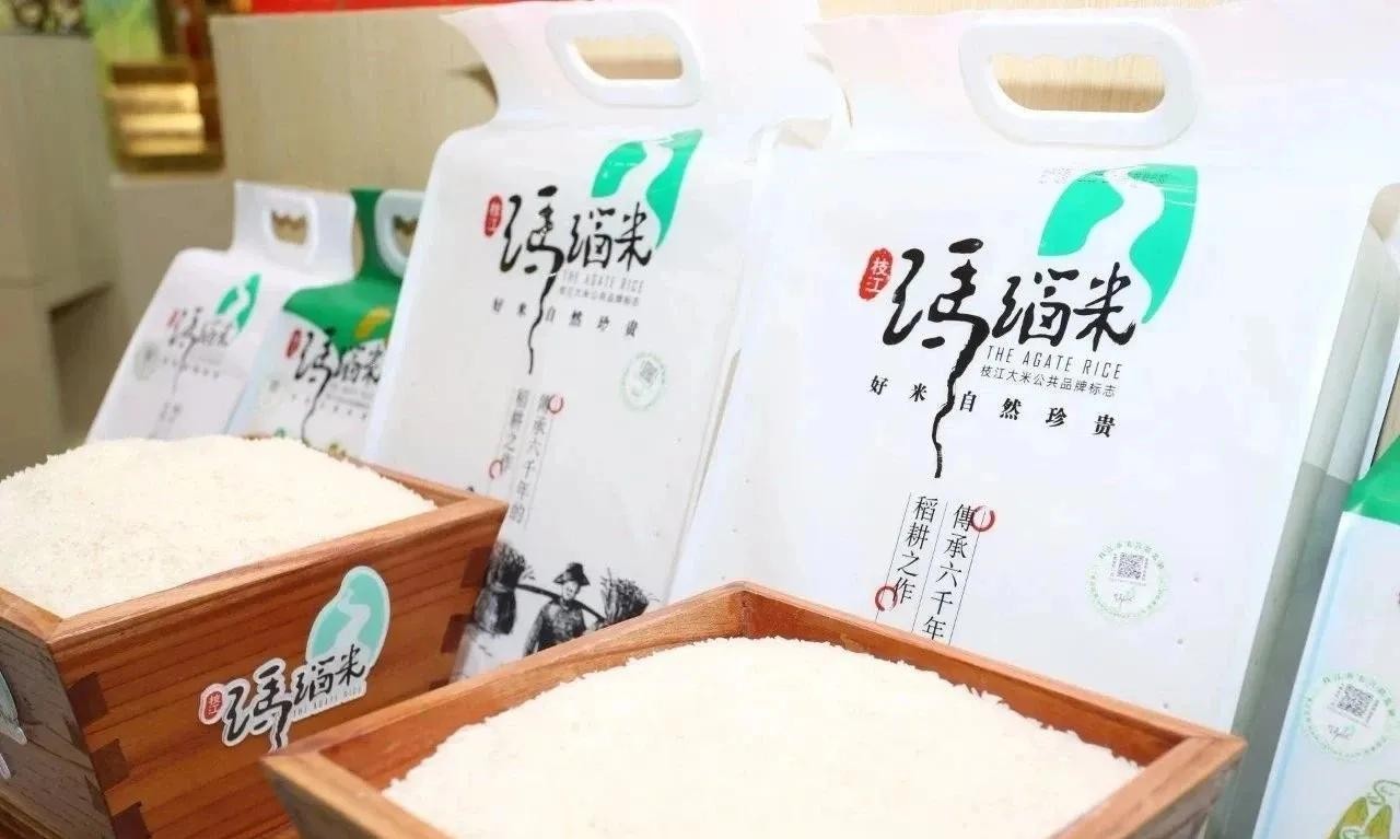 枝江玛瑙米,因产于枝江玛瑙河流域而得名玛瑙河两岸,沃野千顷,田畈广袤优越的地理位置和温润的气候条件造就了枝江玛瑙米观之润白如玉、闻之清香扑鼻食之软糯甘甜的特点被誉为籼米中的“南方闺秀”。