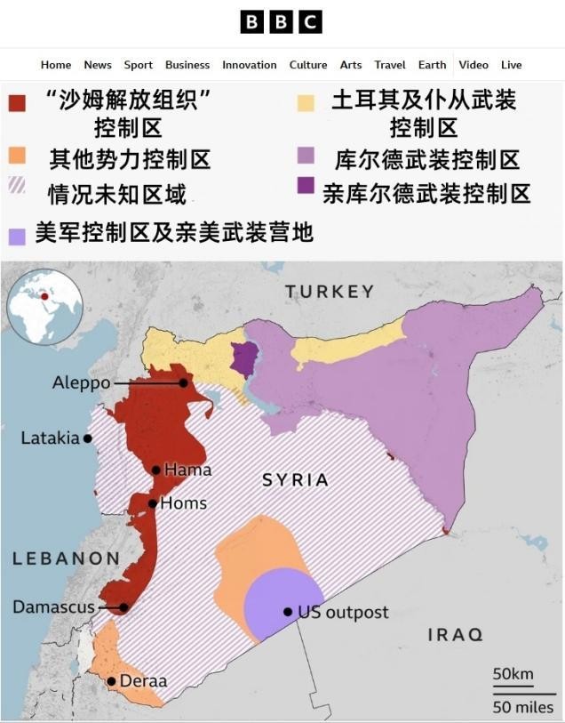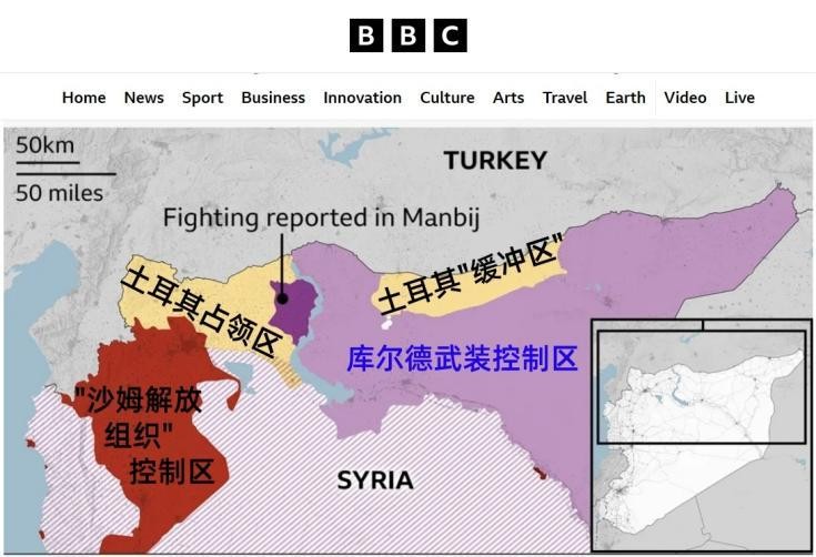 叙北部局势示意图。图/英广播公司网站截图