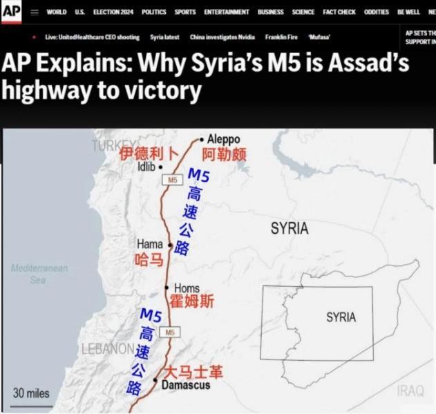 美联社指出,和平年代的M5公路是叙经济动脉,日均贸易额达2500万美元。