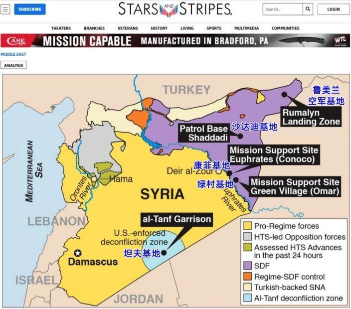 驻叙美军基地一览。图/美《星条旗报》网站截图
